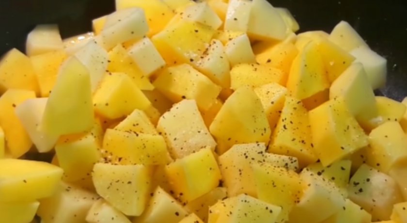 – картофель не обязательно нарезать соломкой. Также отлично пропекутся кубики и обычные кусочки различной формы. В таком варианте толщина должна быть примерно 2 сантиметра.