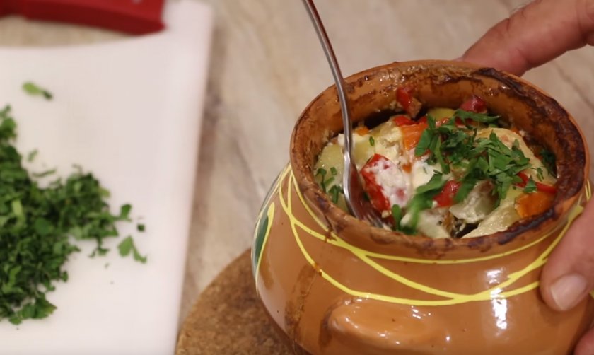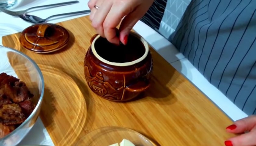 - Внутренние стенки горшка обязательно смазывайте кусочком сливочного масла, чтобы блюдо легко отделялось от стенок.