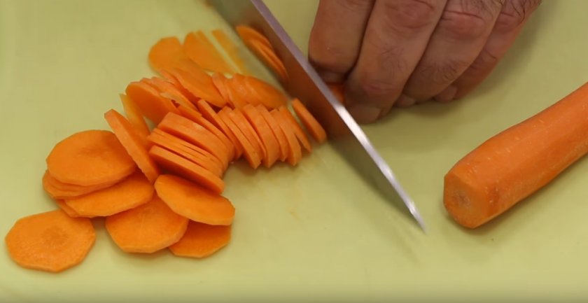 В конце в сковороду высыпаем мелко рубленный лук и морковную стружку. Время от времени помешивая деревянной лопаткой, обжариваем овощи до мягкости. На этом этапе выключаем конфорку и переходим ко второму.