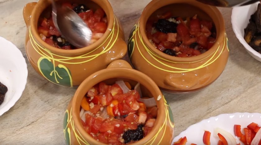 - Воду в рецепте лучше заменить на мясной бульон, он должен заполнять горшочек не больше чем на 2/3. Иначе лишняя жидкость «убежит» в духовку.