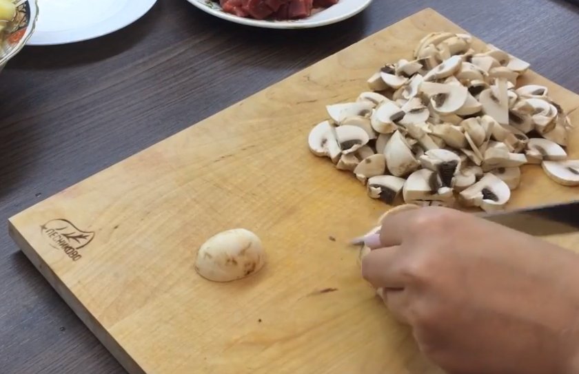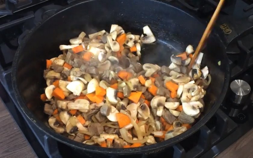 Шампиньоны можно заменить на вешенки или любые лесные грибы. Можно также брать мороженые заготовки, сушеные грибы.