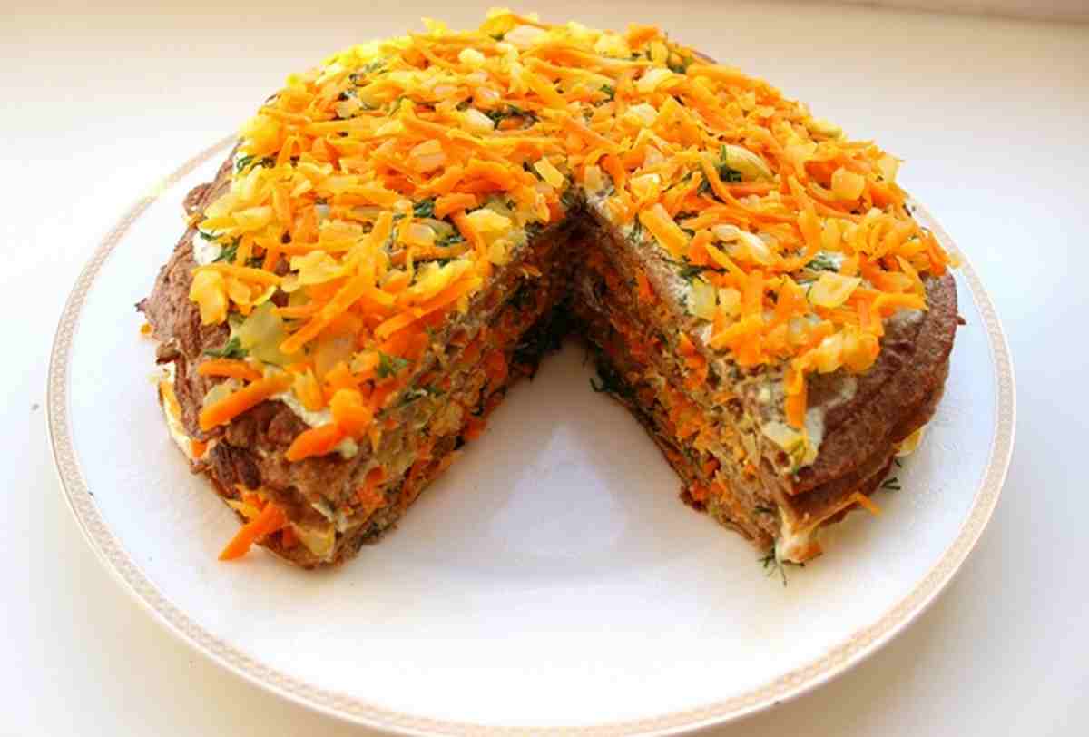 Печёночный торт из говяжьей печени