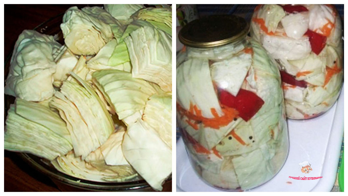 Как только не заготавливают капусту на зиму! Солят, квасят, маринуют, закатывают с морковью, свеклой, помидорами, грибами. У любой хозяйки наверняка есть несколько любимых рецептов, по которым она и готовит консервированную капусту для всей семьи. Но даже самый вкусный салат надоедает есть из года в год. Возможно, капуста кусками не будет для вас открытием, но мы постараемся представить вашему вниманию несколько рецептов, отличающихся друг от друга вкусом и набором продуктов.