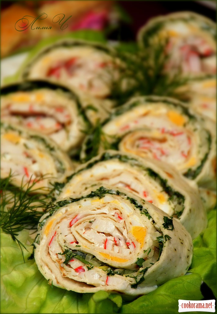Рулет из лаваша с крабовыми палочками: пошаговые рецепты с фото