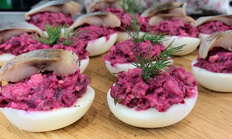 Яйца, фаршированные свеклой и селедкой, — очень простая и вкусная закуска к праздничному столу. Этот простой рецепт наверняка понравится любителям популярного салата «Селедка под шубой».