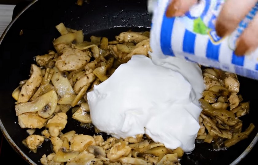 Рецепт шампиньонов с курицей в сметане