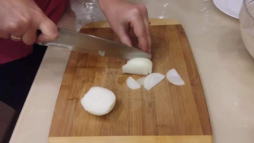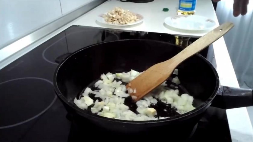 ![]() За полчаса до конца маринования разогрейте на огне сковороду, смажьте её дно растительным маслом и обжарьте нарезанный кубиками лук (пока он не станет слегка прозрачным). За полчаса до конца маринования разогрейте на огне сковороду, смажьте её дно растительным маслом и обжарьте нарезанный кубиками лук (пока он не станет слегка прозрачным).