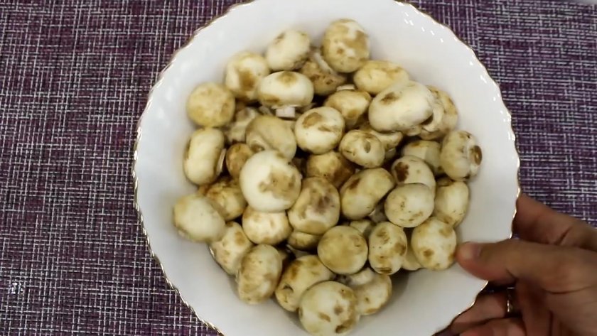 Шампиньоны целиком в духовке готовят из свежих, замороженных и маринованных грибов, но первый вариант предпочтительнее. Поскольку сохраняются более ярко выраженный вкус и сочность. При покупке нужно обратить внимание на цвет шампиньонов, нижняя часть шляпки должна быть белой. Мыть их можно, но быстро, чтобы не размокли, потом сразу вытереть салфеткой.