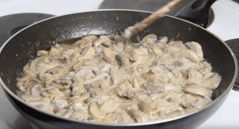 Шаг 4: подаем тушеные шампиньоны.