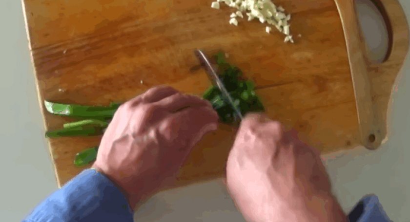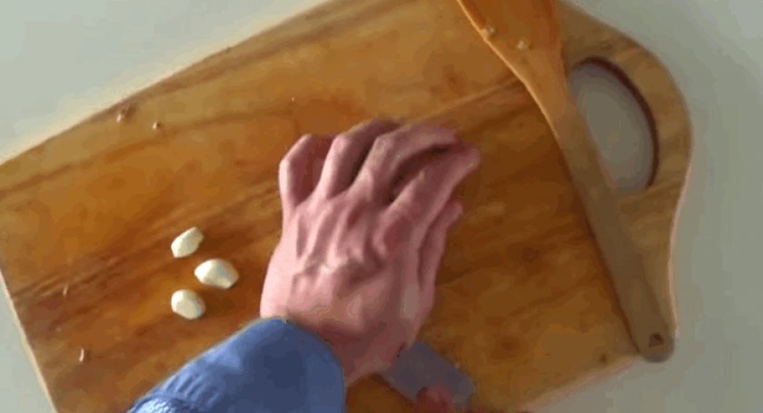 Чеснок раздавить ножом, измельчить.