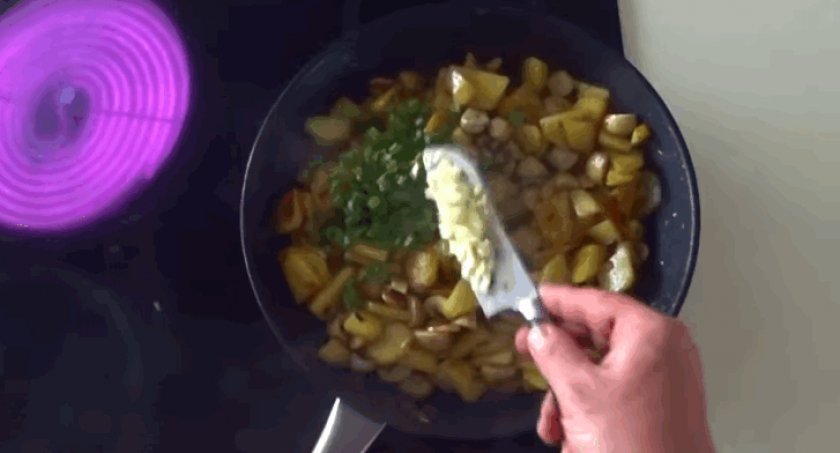 Как тушить шампиньоны с картошкой на сковороде