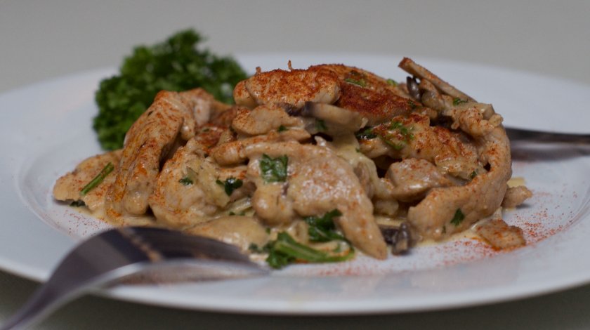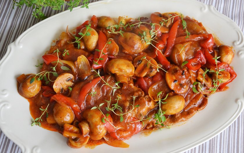 Сочетание свинины с шампиньонами и сметаной нельзя назвать легким для желудка, но зато как вкусно! Блюдо напоминает известный всем нам жульен, но без сыра.