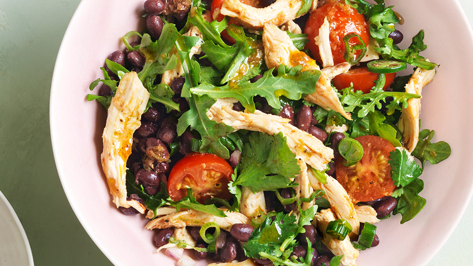 Юго-западный салат с курицей, черной фасолью и авокадо